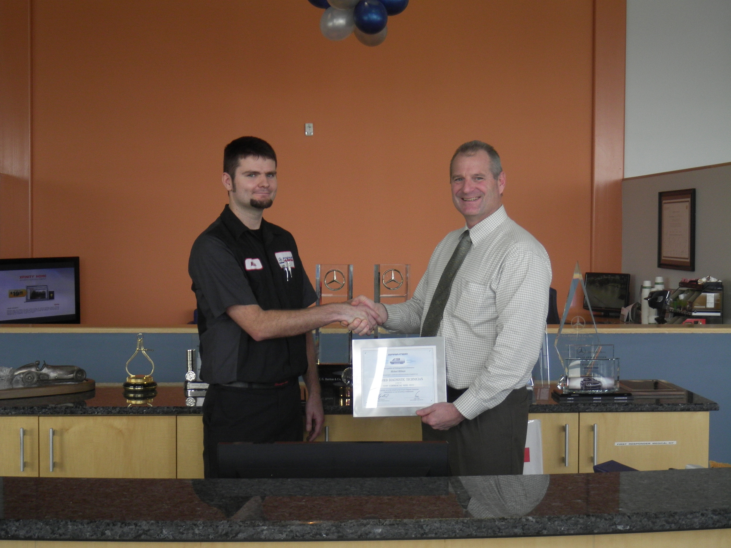 Mike Millman, a member of our Mercedes-Benz service department, was awarded for completing the Sprinter Master Diagnostic Technician Program, only 24 technicians received this award in the United States.