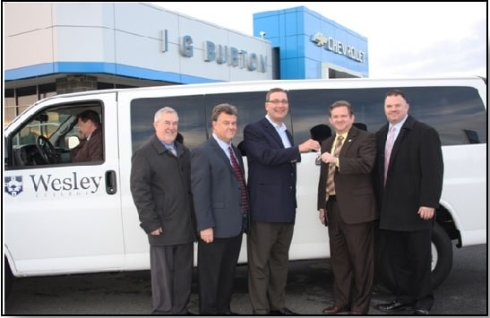 President of i.g. Burton Dealership Charles Burton presented Wesley College with a 2013 Chevrolet 15 passenger van valued at nearly $38,000 to provide shuttle service from the main campus to the new Health Science Building located on South New Street