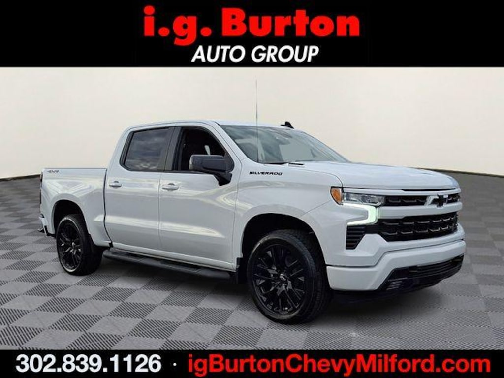 Since 1908, i.G. Burton Auto Group has served Delmarva and its surrounding communities with outstanding sales and service as its longest-standing family-owned and operated dealer group. See why we proudly say, 'Nobody Beats a Burton Deal! NOBODY!' 10-Speed Automatic, 4WD, Black Leather. Recent Arrival! Silverado 1500 RST Not all customers qualify for all rebates. Price includes: $1750 - Chevrolet Bonus Cash. Exp. 03/02/2026 $2500 - Chevrolet Consumer Cash Program. Exp. 03/02/2026