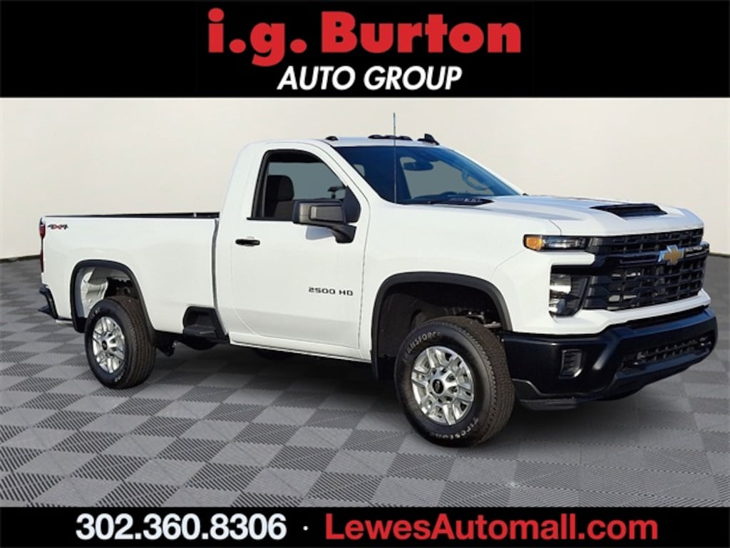 Since 1908, i.G. Burton Auto Group has served Delmarva and its surrounding communities with outstanding sales and service as its longest-standing family-owned and operated dealer group. See why we proudly say, 'Nobody Beats a Burton Deal! NOBODY!' 2026 Chevrolet Silverado 2500HD Work Truck 10-Speed Automatic, 4WD, Jet Blk Clth Vinyl. Price includes: $1000 - Chevrolet Consumer Cash Program. Exp. 02/02/2026
