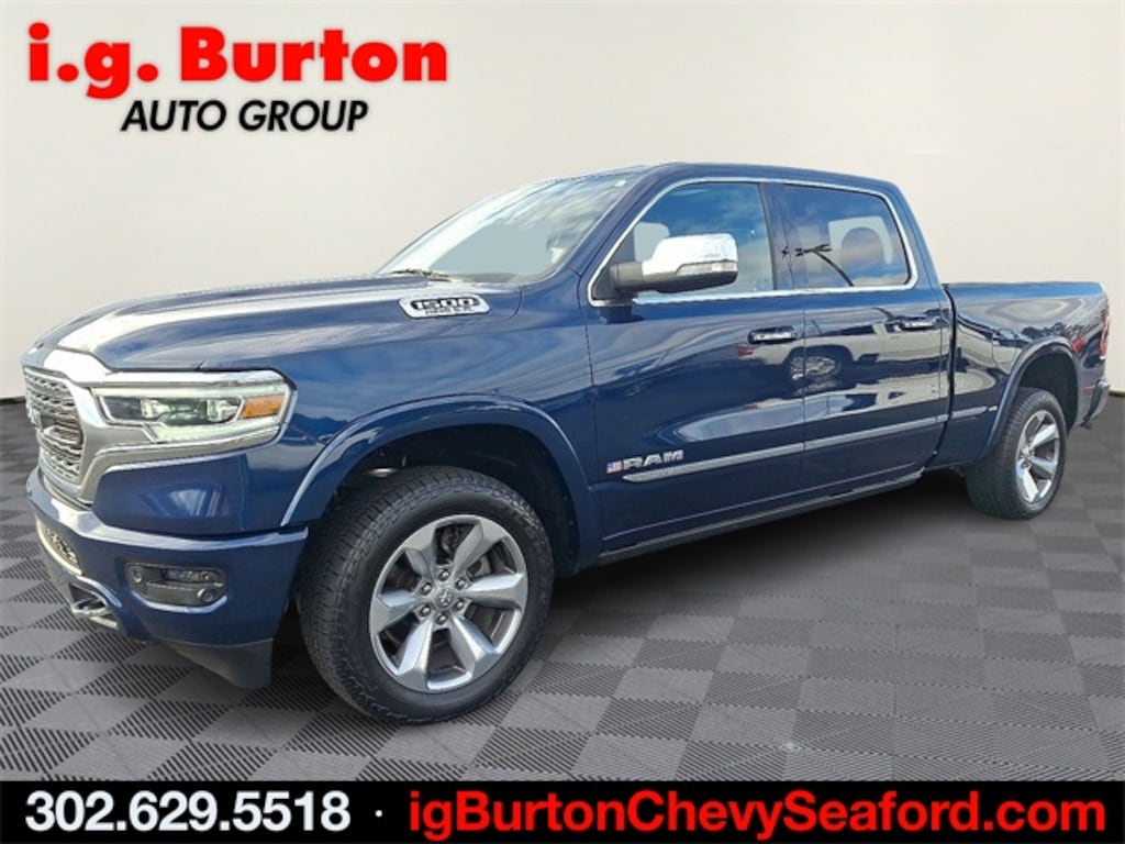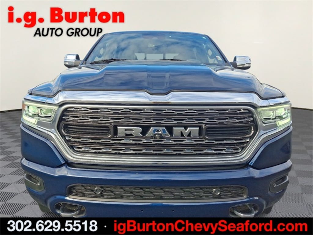 THIS VEHICLE IS SCHEDULED TO LEAVE FOR MANHEIM AUTO AUCTION AND IS BEING OFFERED FOR A LIMITED TIME, **SEE IT AT THE SEAFORD CHEVROLET LOCATION**, 4 Adjustable Cargo Tie-Down Hooks, Adaptive Cruise Control w/Stop & Go, Bed Utility Group, Body Color Bumper Group, Body Color Front Bumper, Body Color Rear Bumper w/Step Pads, Deployable Bed Step, E-Locker Rear Axle, Front Extra HD Shock Absorbers, Full Speed Forward Collision Warning Plus, Hill Descent Control, Lane Keep Assist, Limited Level 1 Equipment Group, Memory seat, Navigation System, Off Road Decals, Off Road Group, Parallel & Perp Park Assist w/Stop, Pedal memory, Pick-Up Box Lighting, Power driver seat, Power steering, Power windows, Quick Order Package 27M Limited, Rear Extra HD Shock Absorbers, Remote keyless entry, Steering wheel mounted audio controls, Ventilated Rear Seats. 2020 Ram 1500 Limited Patriot Blue Pearlcoat Clean CARFAX.